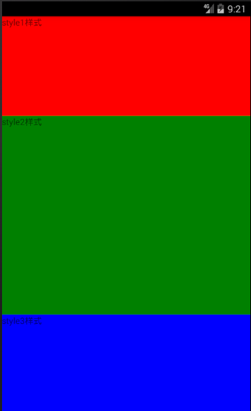 style2的高度大约为style1和style3的2倍,因为此时屏幕被分成了1+2+1=4份,style2占其中2份为1/2,其他为1/4。