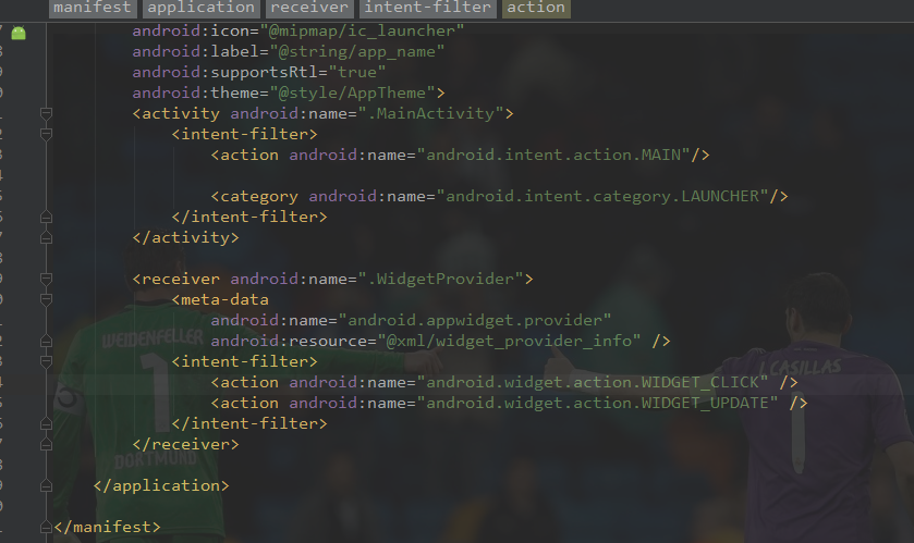 第二个action作为小部件的标识必须存在,这是系统的规范。