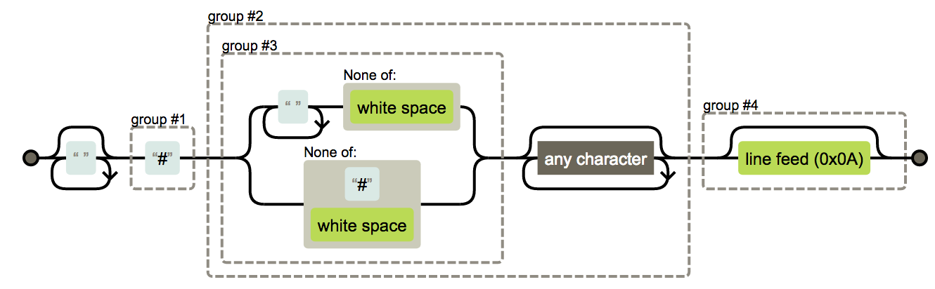 匹配在行开头头的任意空格加上1到6个#加上任意空格以及一个非空白符或者没有空格任意一个非#的非空白符加上任意数量的非换行符。