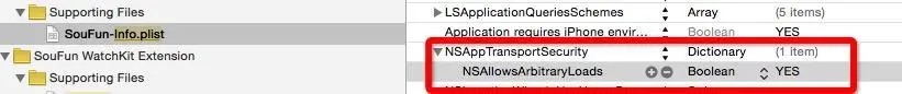从IOS9开始IOS就把所有的HTTP请求都改为HTTPS了,IOS9系统发送的网络请求将统一使用TLS1.2 SSL。目的是强制增强数据访问安全。一看我们的工程既有https又有http你会发现有这个东西: