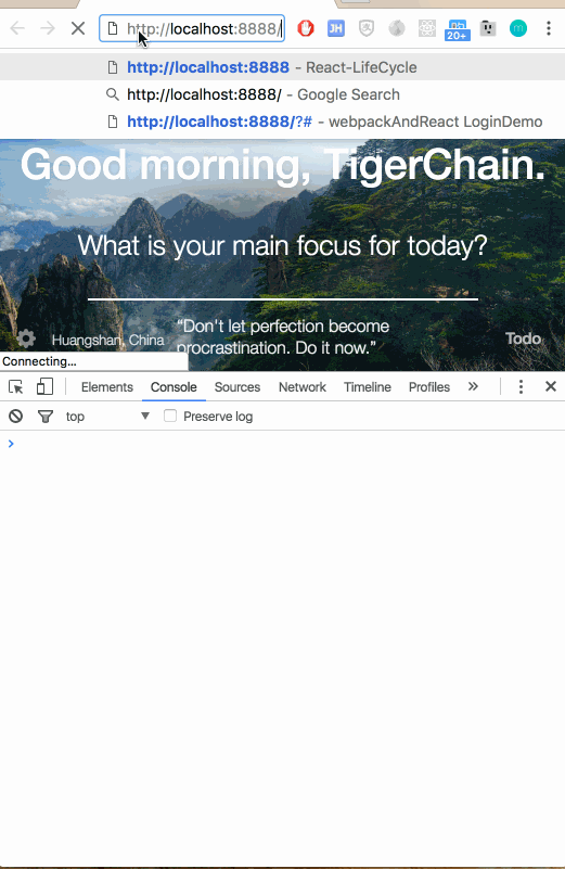 经过上面的学习,我们大体对 React 组件的生命周期有了一定的认识,下面我们写一个 Demo 来验证一下。