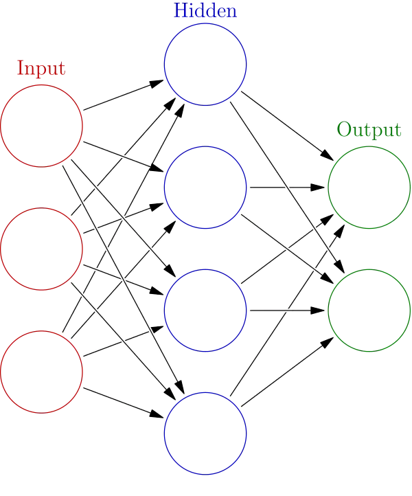 I used this challenge to learn more about neural networks and machine learning. A neural network consists of layers, and each layer has neurons. My network has three layers: an input layer, a hidden layer, and an output layer.