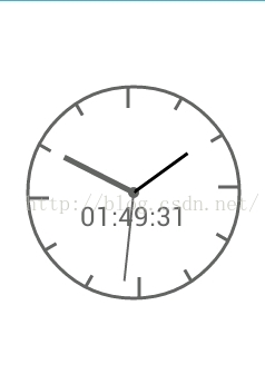 在这解释下这个mDegrees这个值 比如现在是21:20 但是分为12小时制的话就是9:20 时就是9*30度=270度 但是这个时针指向9肯定是不对的,因为还有20分钟呢?时针线肯定是在9和10之间指向,这么这1小时之间是30度,就拿21:30这个时间来算,这个时候时针角度应该是30*9+30/2=285度 这就说明60分钟1小时 而1小时是30度,也就是说每2分钟时针角度应该动一下,根据这个原理分钟和表之间的计算也是类似的,