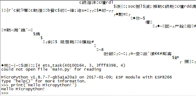 这样就完成了固件的烧写了。接下来就可用用串口工具链接COM3,波特率115200,没有流控制,板子开机显示如下: