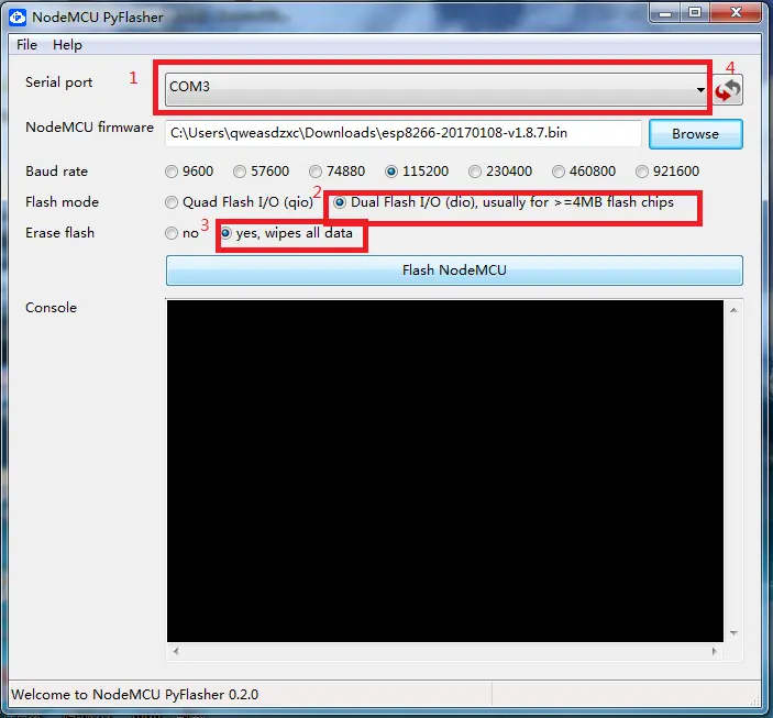 依次确认1,2,3的设置,最后点击4的按钮开始烧写,烧写完毕如下: