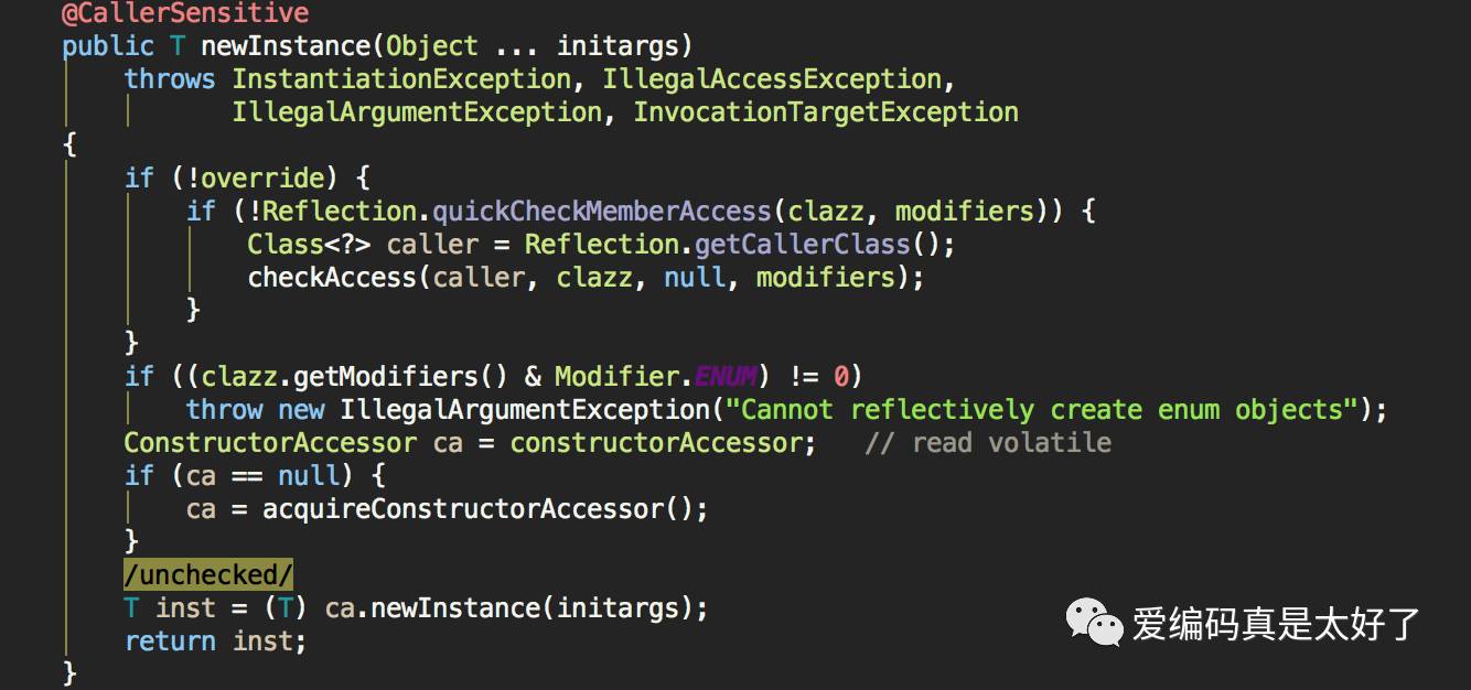 Constructor类中newInstance方法对枚举类进行判断,阻止枚举类通过反射创建实例。
