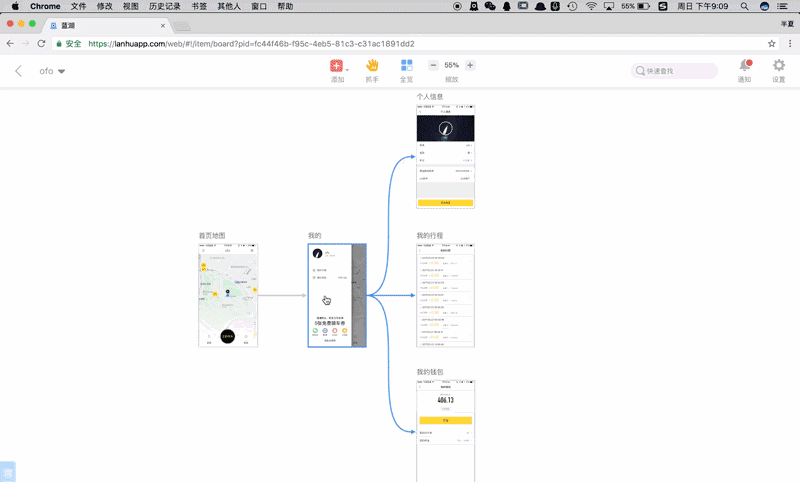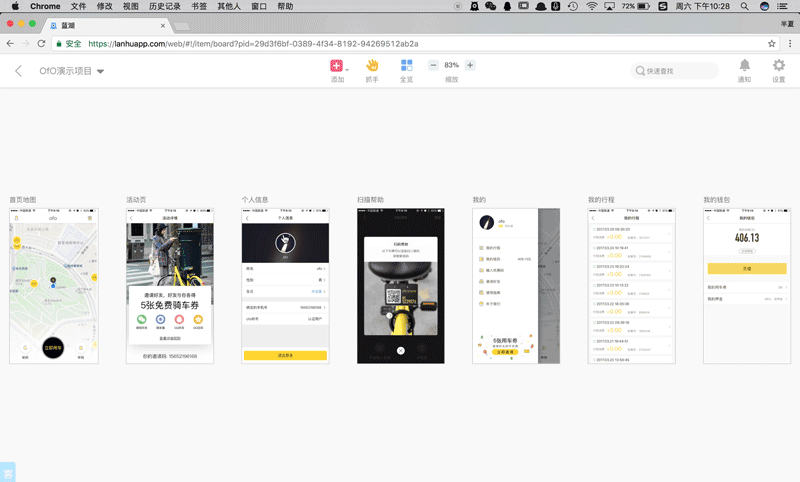 6.在蓝湖上,还可以基于设计图快速制作一个高保真的交互原型,让工程师不用再跑来问你“这个按钮跳到哪啊”,该原型还可以在蓝湖手机端App和微信上进行操作和预览。