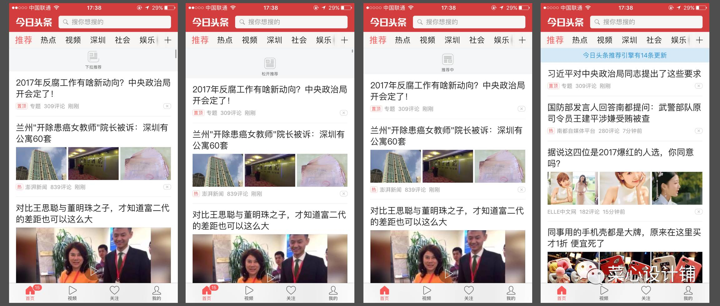 这里我举的例子是动画中没有文案的情况,当有文案时,考虑的内容会更多,如:一个下拉过程可能会有“下拉加载”、释放加载、正在加载这三个状态,而当加载完成后,还需有反馈状态告诉用户有多少条新的信息,如新闻类的下拉刷新。如下图: