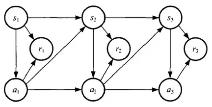 如图所示,在每步迭代过程中,首先智能代理(学习系统)接收环境的状态st,然后产生动作at作用于环境,环境接收动作at,并且对其进行评价,反馈给智能代理rt。不断的循环这个过程,就会产生一个状态/动作/反馈的序列:(s1, a1, r1, s2, a2, r2.....,sn, an, rn),而这个序列让我们很自然的想起了:
