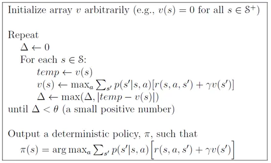 即在值迭代的第k+1次迭代时,直接将能获得的最大的Vπ(s)值赋给Vk+1。
