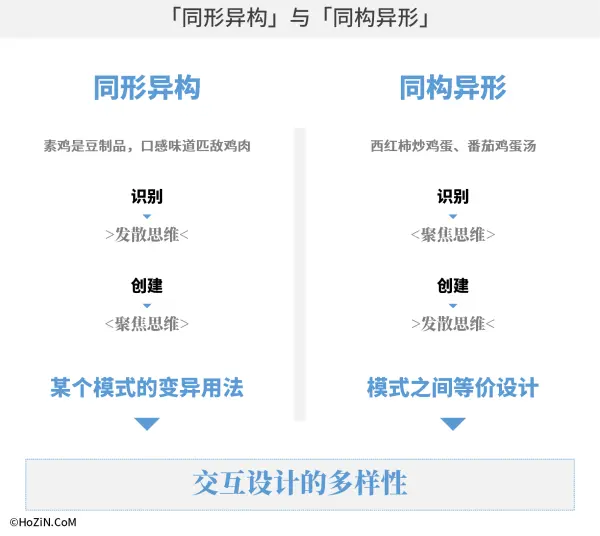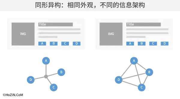 一旦业务被确认,信息架构就几乎固定,基于近似的架构提供多样交互方案,是资深交互设计师的必备技能;交互设计多样性主要来自两个方面「同形异构」与「同构异形」。