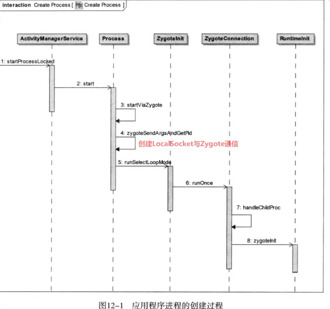 其中ActivityManagerService和Process运行在system_server进程中,启动新的进程时,需要system_server与zygote进程进行socket通信,从而fork出新的进程。执行RuntimeInit.zygoteInit() -> RuntimeInit.applicationInit() -> RuntimeInit.invokeStaticMain()