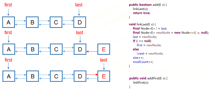 LinkedList追加元素的过程示例: