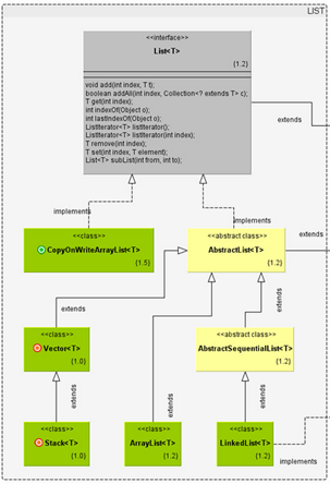 List接口继承自Collection,用于定义以列表形式存储的集合,List接口为集合中的每个对象分配了一个索引(index),标记该对象在List中的位置,并可以通过index定位到指定位置的对象。