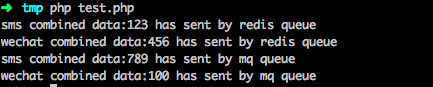 echo $data." has sent by redis queue\n";