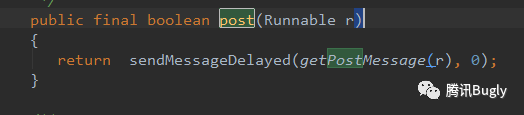 Runnable里,这里我们只延迟Runnable经过封装的消息,并根据调用堆栈做了过滤 -