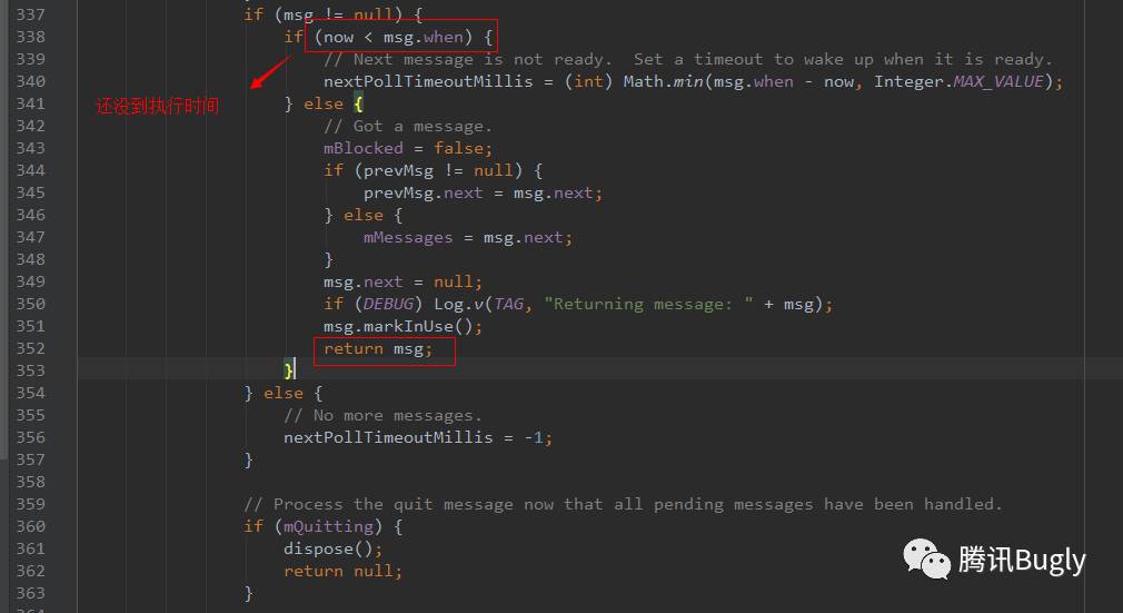 在next获取了当前系统时间,若到了消息执行时间,则返回消息