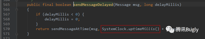 在sendMessageDelayed中会用系统开机总时间 +dalayMillis,所以传入 sendMessageAtTime的值是相对于系统启动的绝对值