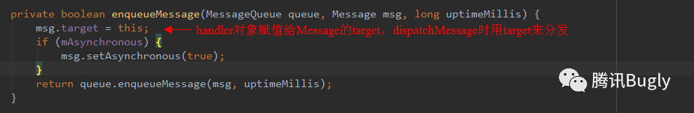 next()从消息队列获取一个消息,无法精准到具体的消息,其实我们还可以参考 removeMessages的实现,通过反射来取出消息,如果 remove的时机过晚,也会导致这个消息已经被消费了,如果 remove错了,导致丢消息,篓子就捅大了。总之,我们必须搞清楚消息入队列的过程。