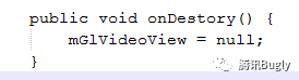 跟开发童鞋反复再三确认,mGLVideoView置空的地方只有一处,就在 onDestroy()中
