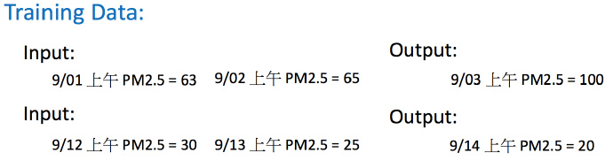 输入就是之前每一天的PM2.5数值,输出是明天的PM2.5,是个标量。