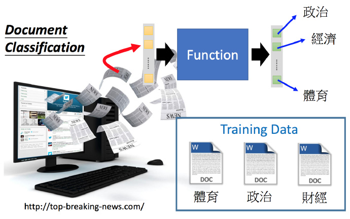 多元分类;例如下面的新闻分类系统,找一个Function,输入就是新闻的内容,输出则是新闻的类型(政治,经济,体育等等)