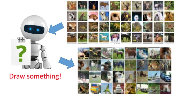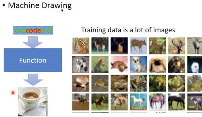 具体说就是给机器一堆数字,他就能自己绘制一张图片,此时训练集只有输出(很多的图片),没有输入。