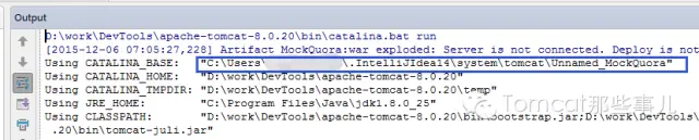下面再来看下Intellij IDEA。在启动Tomcat时,Log一开始就能看到类似于下面的内容: