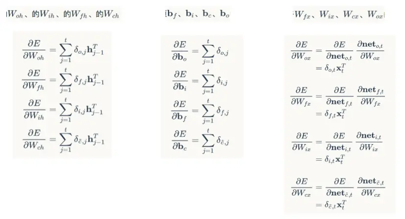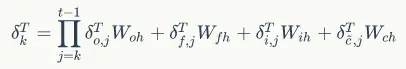 利用 h_t c_t 的定义,和全导数公式,可以得到 将误差项向前传递到任意k时刻的公式: