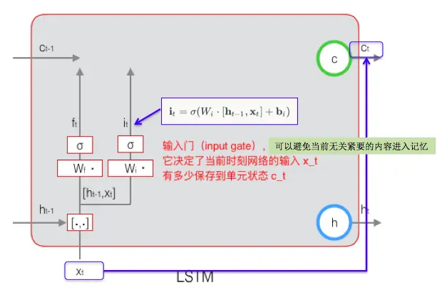 它决定了当前时刻网络的输入 x_t 有多少保存到单元状态 c_t