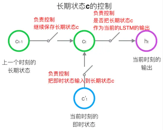 在 LSTM-1 中提到了,模型是通过使用三个控制开关来控制长期状态 c 的: