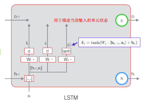 根据上一次的输出和本次输入来计算当前输入的单元状态:
