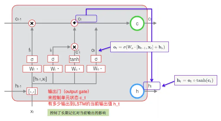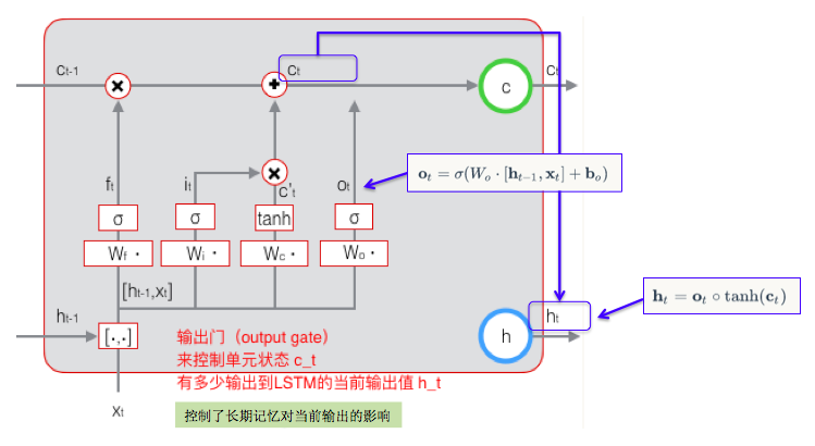 控制单元状态 c_t 有多少输出到 LSTM 的当前输出值 h_t