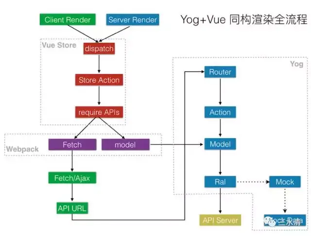 vue-src文件夹内容根据server-entry和client-entry打包出来,分别放进yog2的client和server对应的文件,之后vue-src在执行环境就不需要了 - 第二次是FIS3的打包,会按照Yog2的规范release出来可以上线的内容