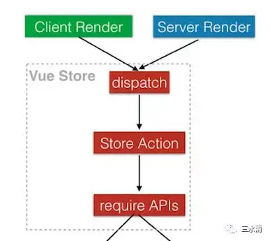 在渲染的时候,prefetch阶段通过dispatch触发Store的Action(Action内允许异步),Action内调用 api/demo 获取数据成功后commit mutation,这样整个数据就跑通了。