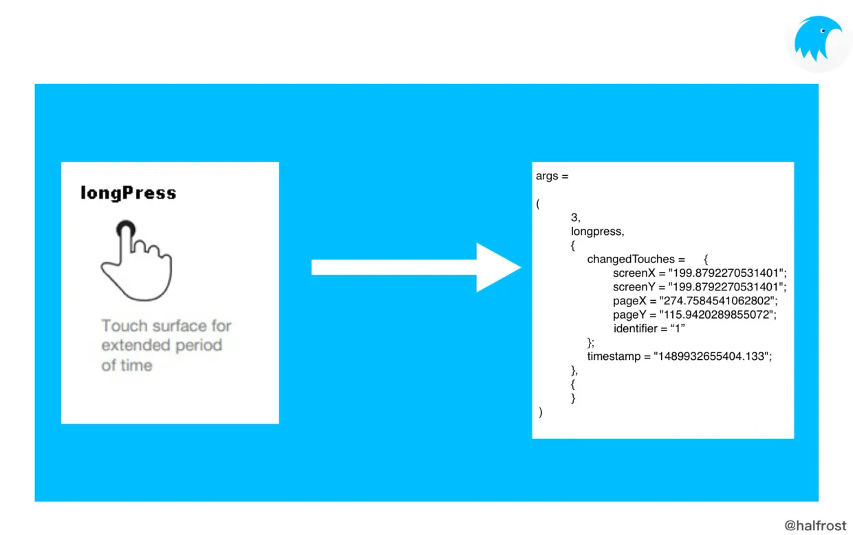 [self fireEvent:@"click" params:@{@"position":position}];最终通过fireEvent:params:domChanges:方法,发送给JS的参数字典大概如下: