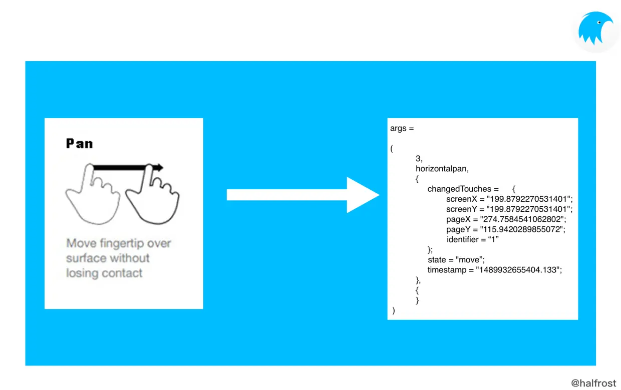 }上述变量里面就包含有4个手势识别器和1个自定义手势识别器。所以Weex的通用事件里面就包含这5种,点击事件,轻扫事件,长按事件,拖动事件,通用触摸事件。