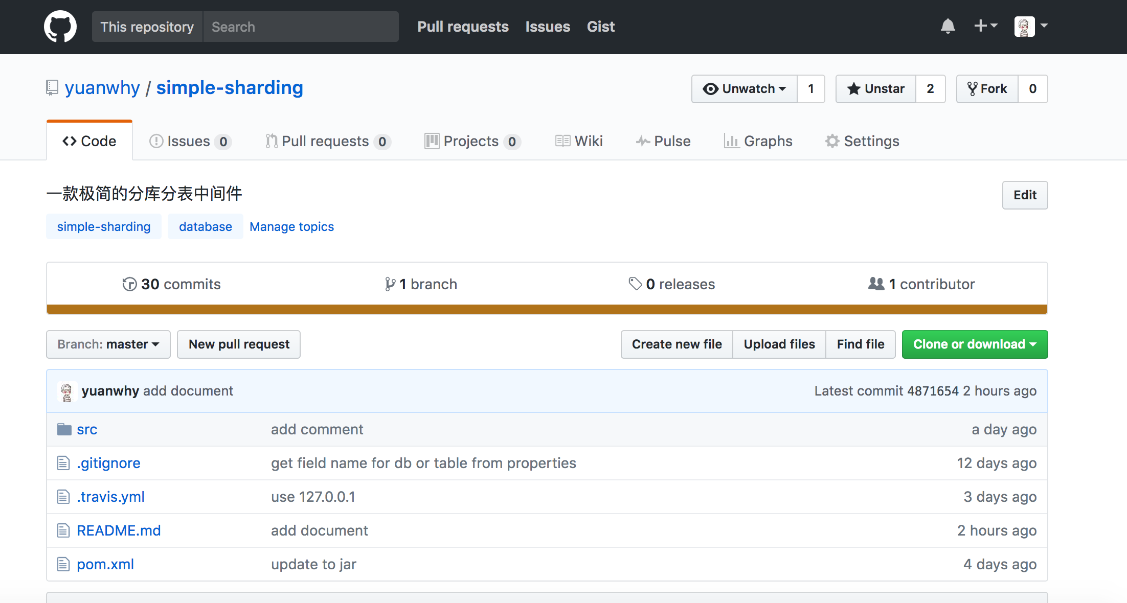 Simple-Sharding在JDBC API的基础上实现了一套新的数据源,内部提供了基本的分库分表支持,同时简单地实现了单库事务,基本上把分库分表中间件最核心的流程走通了一遍。作为研究性质的项目,Simple-Sharding目前还很年轻,不推荐在生产环境中使用,希望对于想学习分库分表中间件的同学有所帮助。