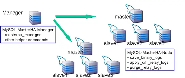 当master出现故障时,通过对比slave之间I/O线程读取master binlog的位置,选取最接近的slave做为latestslave。其它slave通过与latest slave对比生成差异中继日志。在latest slave上应用从master保存的binlog,同时将latest slave提升为master。最后在其它slave上应用相应的差异中继日志并开始从新的master开始复制。