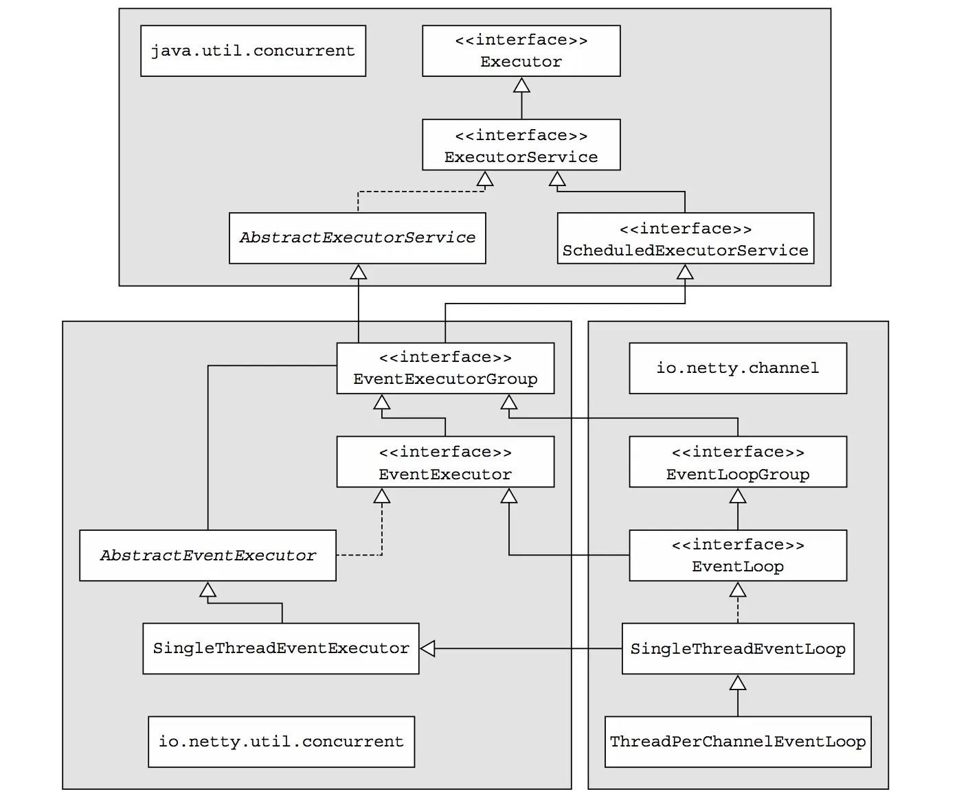 在本文之后的内容中有时候会不区分「EventLoop、EventExecutor和线程」,「EventExecutorGroup和线程池」的概念