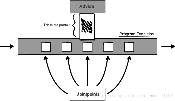 join point是在程序流中被定义好的点。pointcut在那些点上选出特定的join point和值。advice是到达join point时被执行的代码。