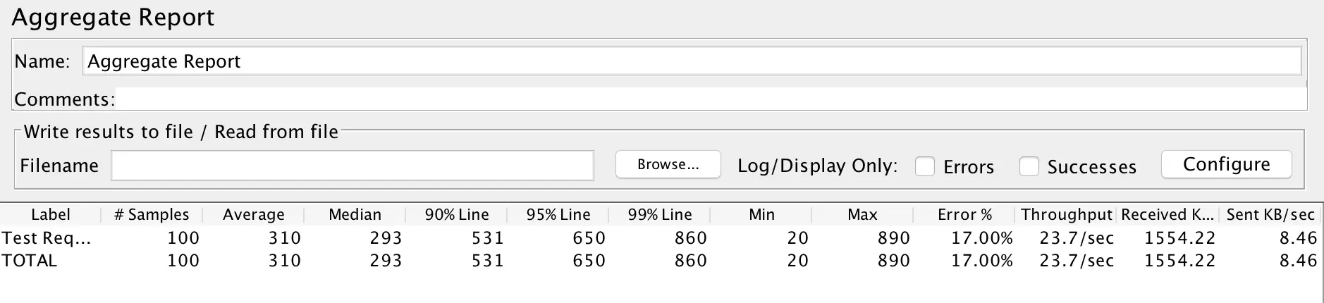 | Error% | 本次测试中出现错误的请求的数量/请求的总数 |