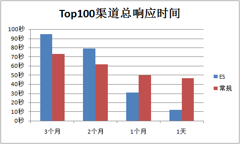 3)从Top1000到Top10,ES的总时间逐渐变差于现有方法。这是因为,空间纬度上,Top10渠道符合条件的数据量级非常大,所以ES的运算效率下降比较厉害。