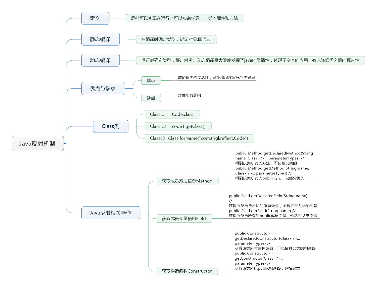 个人整理的Java反射机制的思维导图,导出的图片无法查看备注的一些信息,所以需要源文件的童鞋可以关注我个人主页上的公众号,回复反射机制即可获取源文件。