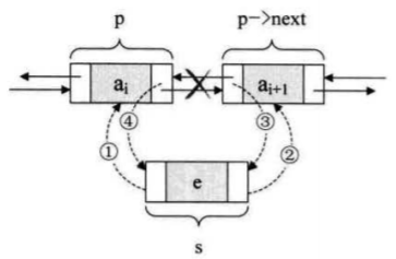假设有一个结点 s,要插入到结点 p 和 p-next之间: