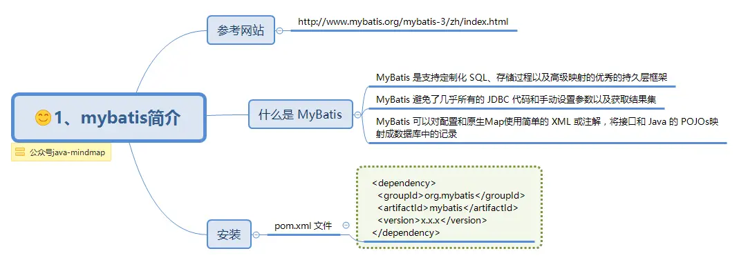 这一篇只写了mybatis的原理和配置文件的基本实用,后一篇会写mybatis的使用方法,欢迎关注我的公众号java-mindmap,更多java思维导图供你学习,每三到四天会更新一篇,带你走进记忆脑图的世界。