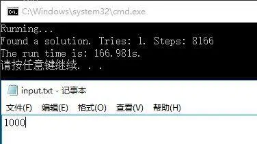 可见当N>10以后,爬山算法的优越性尽显无疑,我于是又给它上了几个更大的数,具体的运行效果如下: