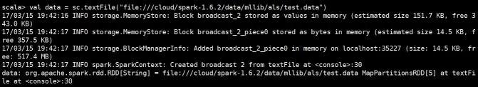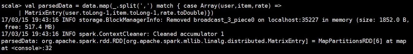 1.首先将评分数据读取到CoordinateMatrix中:
