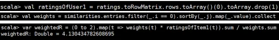 //计算用户1对其他项目的加权平均分