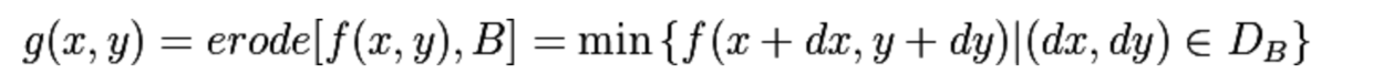其中,g(x,y)为腐蚀后的灰度图像,f(x,y)为原灰度图像,B为结构元素。腐蚀运算是由结构元素确定的邻域块中选取图像值与结构元素值的差的最小值。